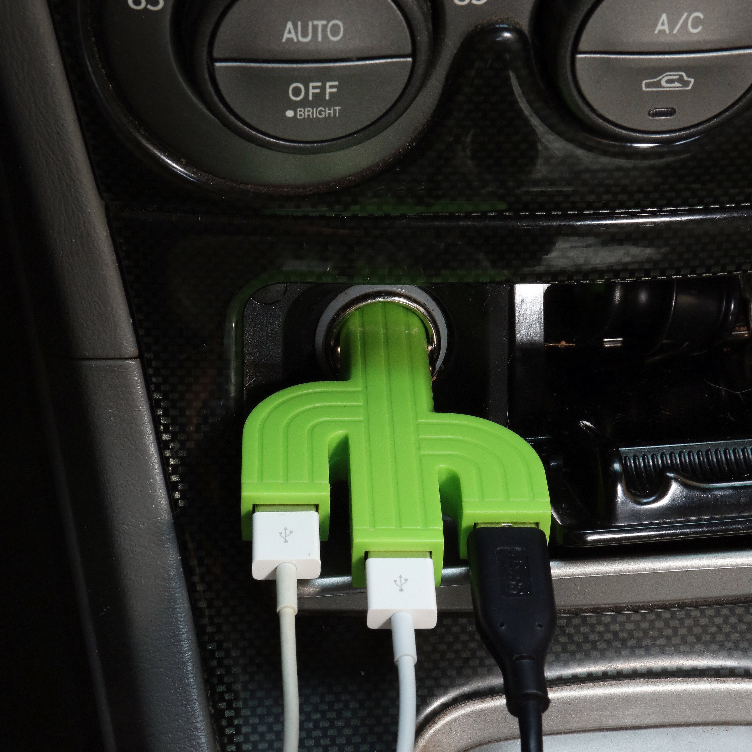 A prickly friend for your thirsty battery. Fits any lighter socket. 3.1 Amps allows for charging 3 mobile devices or 1 mobile and 1 tablet.